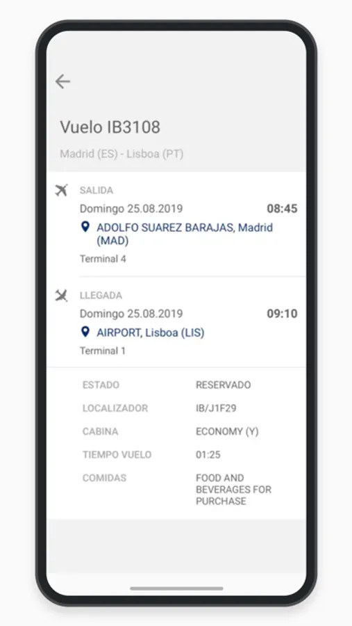 - Visualizar los detalles de tu itinerario, (avión, hotel, coche, tren,...) y la información de los proveedores, su ubicación, teléfono, tarjetas de embarque,…