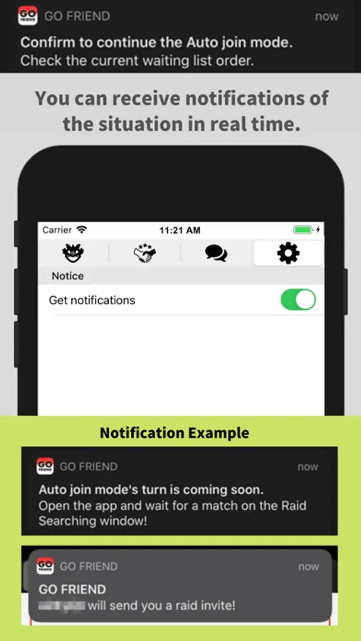 GO Friend is an application to find trainers who want participate in Invitation Raid Battle.
