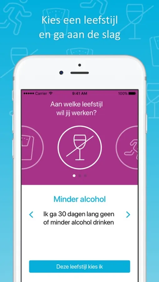 De Beter Gezond App steunt patiënten na kanker met een duwtje in de rug om gezonder te leven: meer bewegen, minder alcohol drinken en gezonder en minder calorierijk eten.