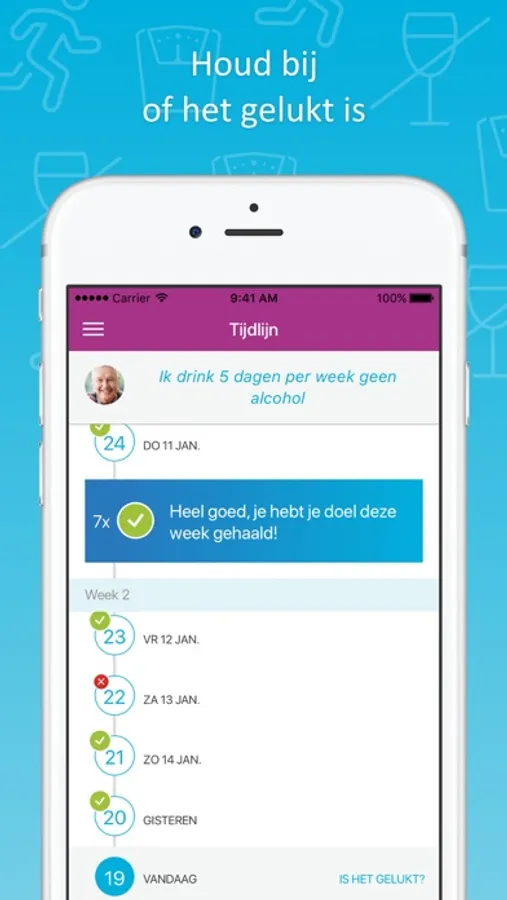 • integratie met HealthKit om doelen met de stappenteller te behalen