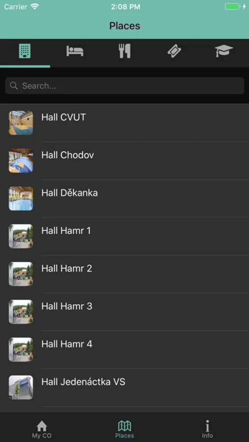 - halls list and navigation