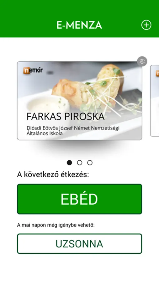 Az E-MENZA rendszerhez kapcsolódó alkalmazás, amely az óvodai belépésnél és az iskolai étkezés igénybevételnél a fizikai kártyát helyettesíti.