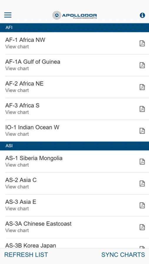 • Chart List can be refreshed, in case new charts are offered.