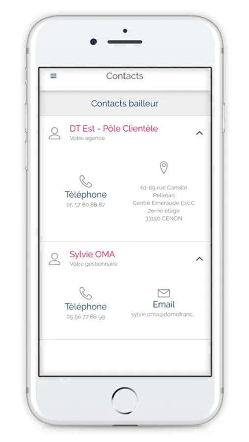 Avec l’application Domofrance, vous restez en contact avec vos interlocuteurs privilégiés. Vous pouvez envoyer un message à votre gestionnaire ou trouver les coordonnées de votre agence .