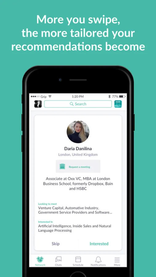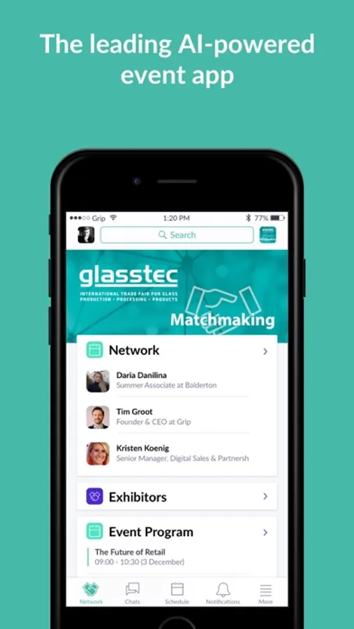 Using artificial intelligence glasstec-Matchmaking will recommend the most relevant participants to you to connect and meet personally. Therefore, the system learns with every swipe who to recommend next.