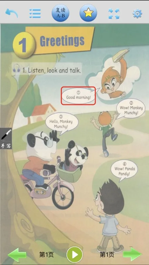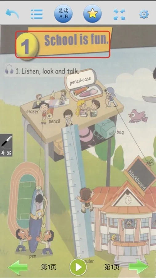 应用里是剑桥少儿英语预备级课文供学生学习。
