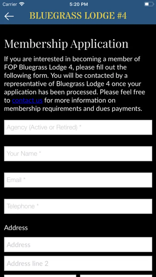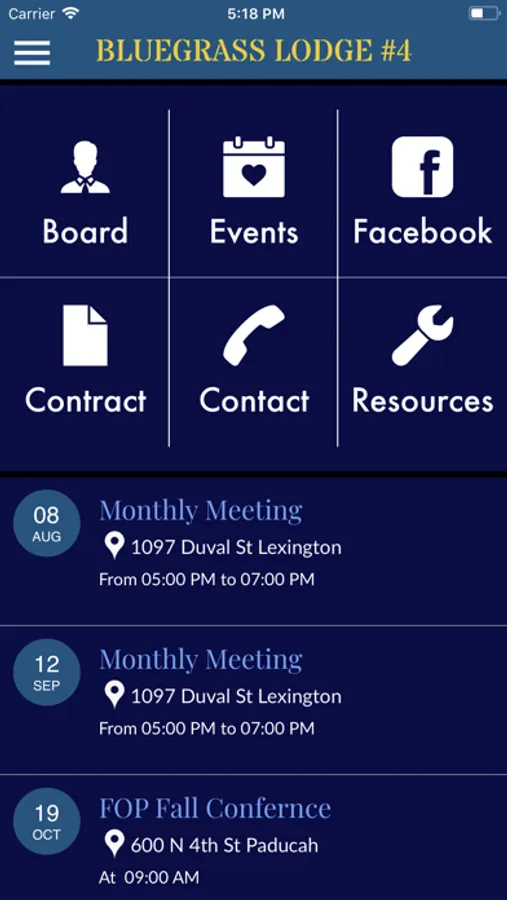 An app created for members of FOP Bluegrass Lodge 4 and the citizens they serve. The app is an important tool in our mission to serve and advocate for our membership at the local, state, and national level. The app includes a calendar of events, scholarship applications, a members in need request form, contact information for board members, and a links to labor agreements. The app utilizes push notifications to message users.