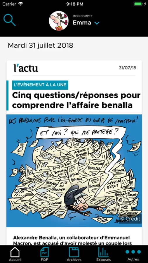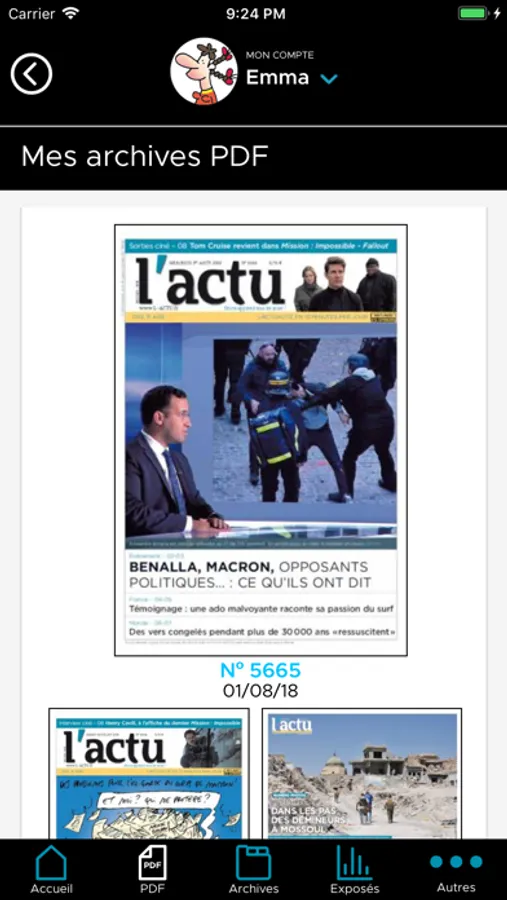 * Si tu es abonné à la version papier de L'ACTU, identifie-toi dans l'appli et dès 20h la veille, lis ton quotidien avant qu'il n'arrive par la Poste. Retrouve aussi l'ensemble des journaux en PDF compris dans ton abonnement.