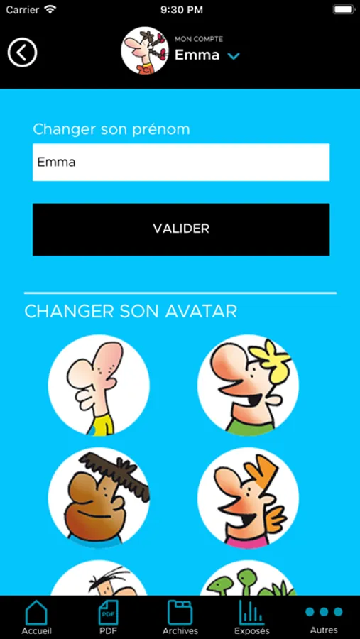 -Mon compte: gérer ton profil, changer ton avatar.