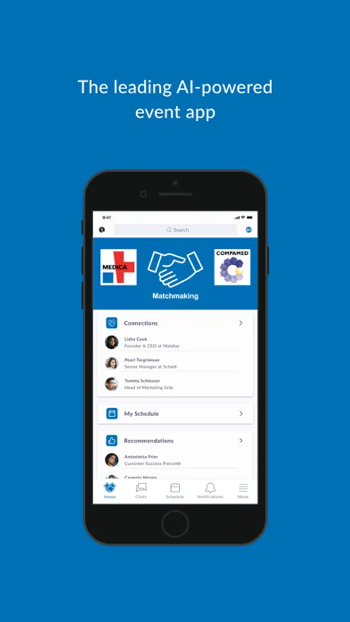 Meet handpicked contacts before, during and after the MEDICA COMPAMED, such as exhibitors and visitors.