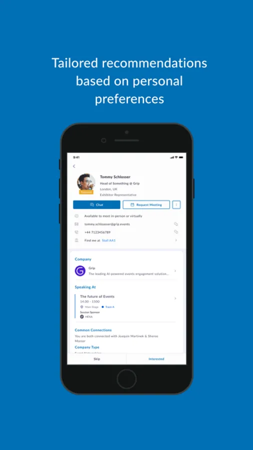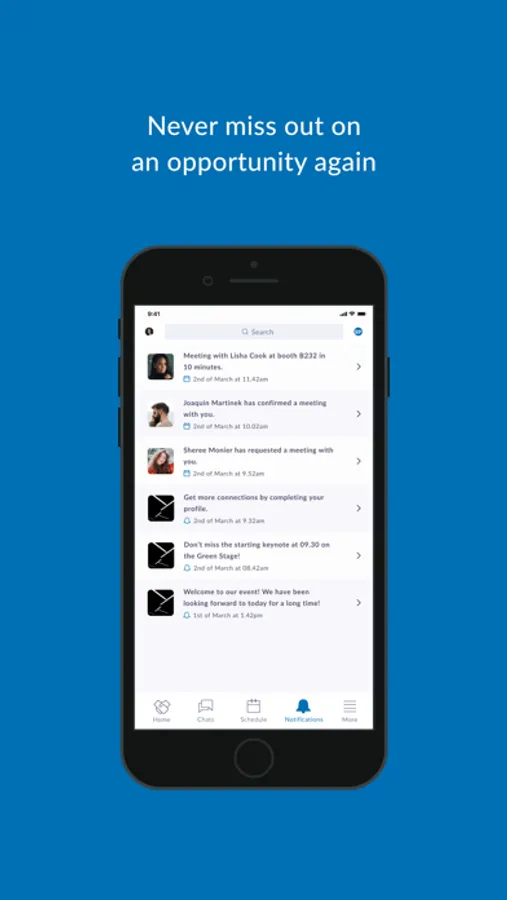 The self-learning matchmaking app selects the most relevant participants for you in order to start networking, arrange appointments and get to know trade fair participants. Every time you use the app, your contact recommendations will get more and more precise because of our self-learning system.