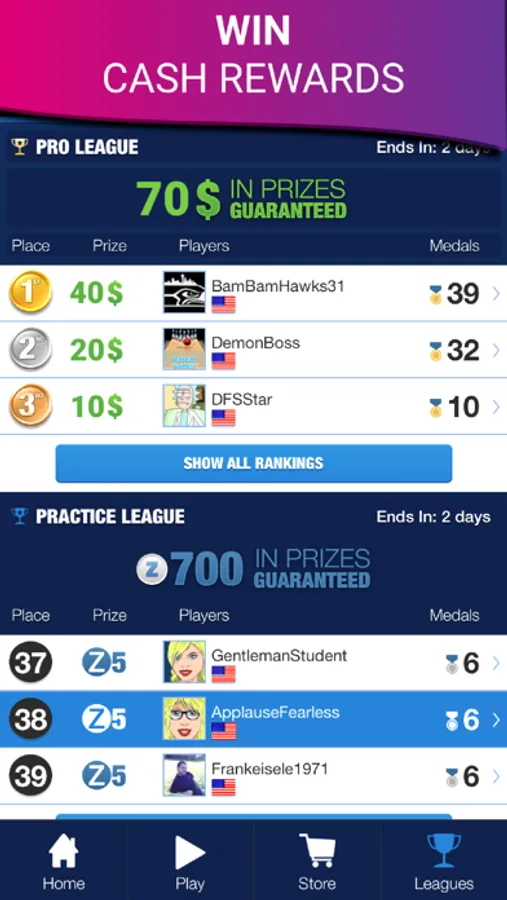WIN CASH – Compete for real money in head to head matches and tournaments