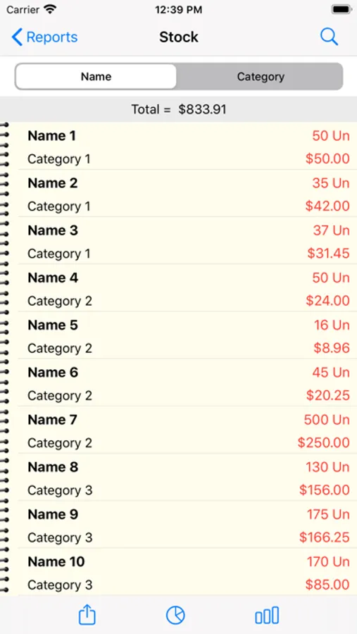 With MyInventory+ you can always know which quantities and values are in stock, as well as the quantities and values entered and left. You can also filter by Category or Product Name.