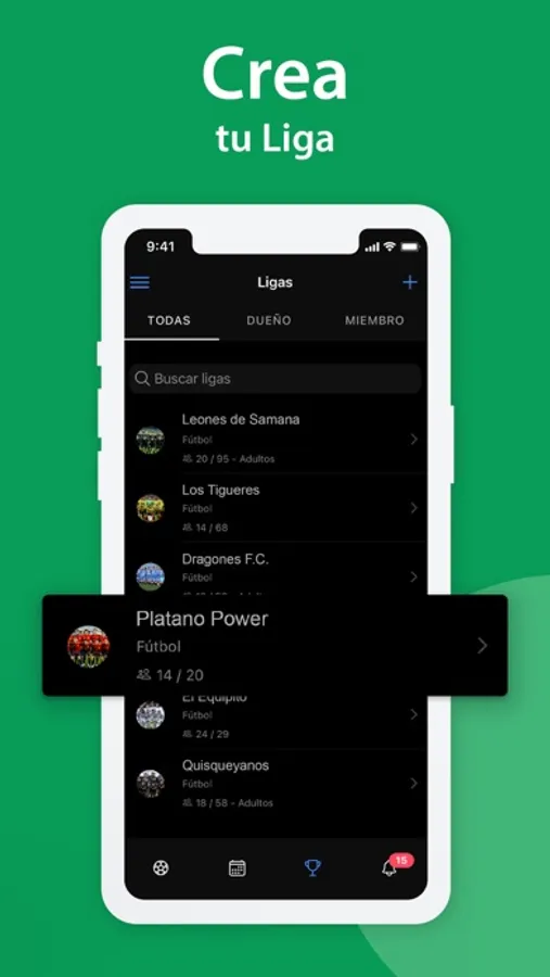 Creación de ligas personalizadas, abiertas o privadas.