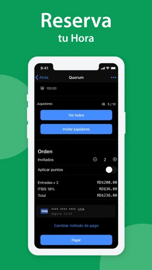 Pagos con tarjetas de credito por cada integrante de la liga.