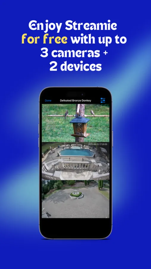 Experience the convenience of Streamie for FREE! Streamie is free to use with up to 3 cameras and 2 devices. Want more? No problem! We offer a 30-day free trial for our extended plans. Visit our website for more details.