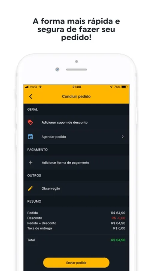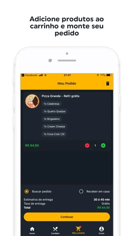 -Receber o pedido diretamente na sua casa ou deixar o pedido feito para retirada no balcão do estabelecimento;