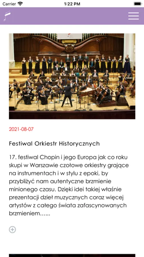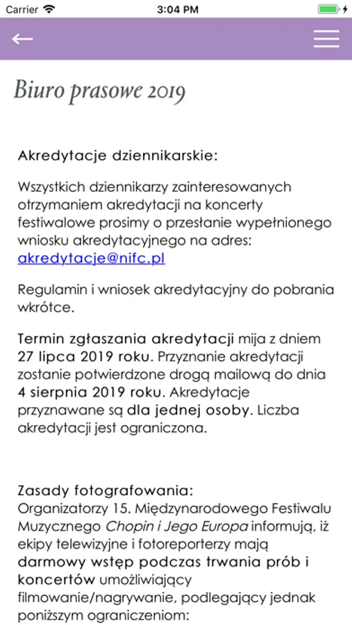 The Chopin and his Europe Festival application will enable you to keep up to date with news from this year’s festival. The app contains programme, the schedule and profiles of the artists.