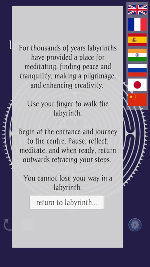 Begin at the entrance and journey to the centre. Pause, reflect, meditate, and when ready, return outwards retracing your path.