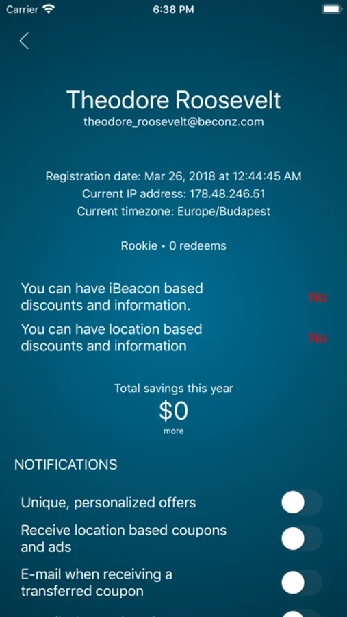You can order your digital coupons and advertisements by your wery own demand. Your coupons are not bound to your mobile phone. You just have to remember to your Beconz account! You can set push notifications about the termination time allowed for using your digital coupons. You can delete coupons or take them into posession for later usage! You can also rate your service level during redeeming your coupons.