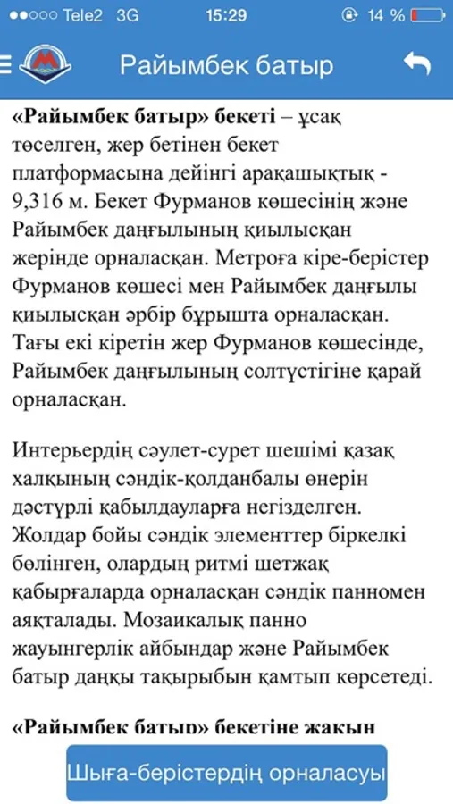 Приложение «Метрополитен города Алматы» предоставляет Вам быстрый доступ к расписанию поездов в автономном режиме.