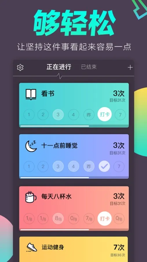 这是一款帮助你培养好习惯,督促你实现很多小目标的目标管理与计划打卡助手。