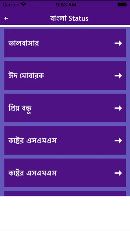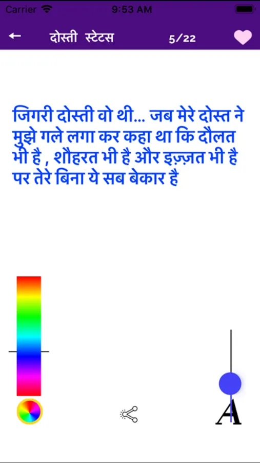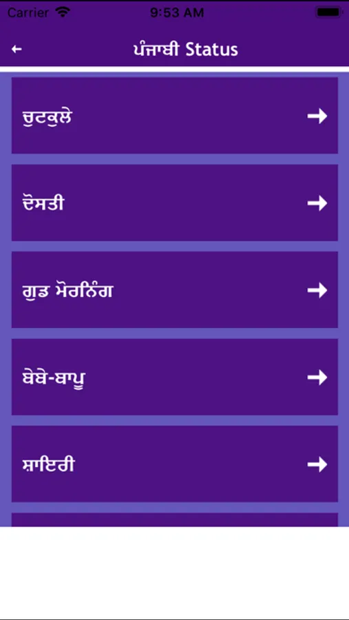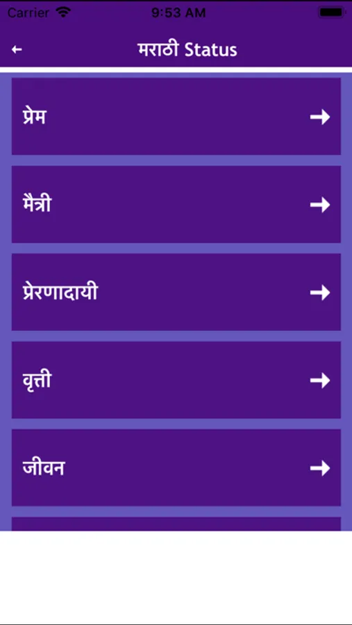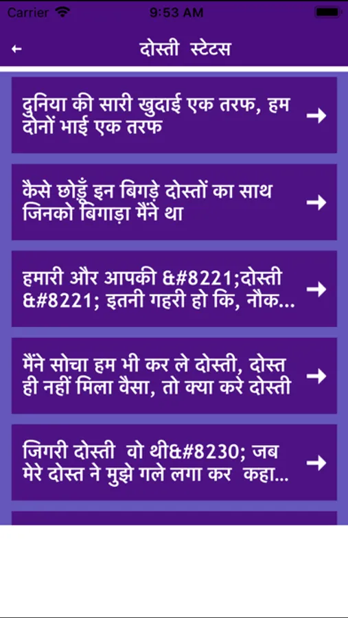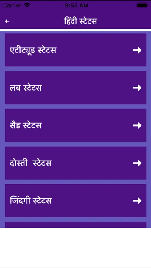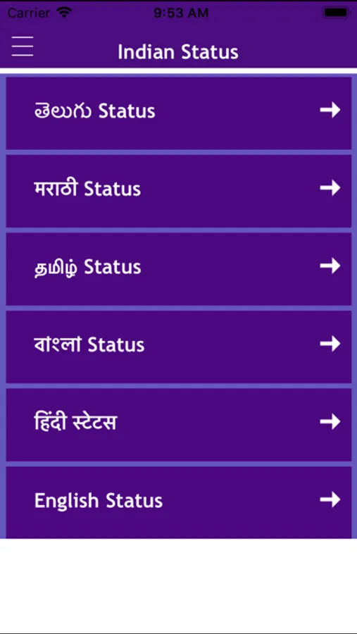 This App contains new Status in All Indian Languages like Hindi, Tamil, Telugu, Kannada, Marathi, Gujarati, Punjabi, Bengali Status etc. Also our developers works hard to update database so that you can have new Status and quotes in the market.