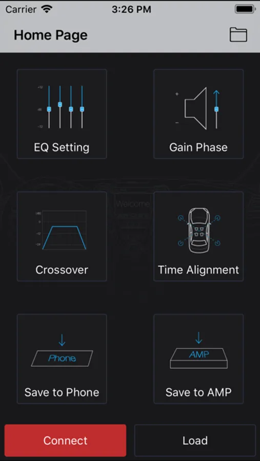 After connecting App to Car Amplifier with Integrated DSP,  EQ, BASS, TIME ALIGNMENT, PHASE, MUTE, FILTER , SAVE SOUND SETTING TO PHONE, SAVE SOUND SETTING TO AMPLIFIER, LOAD SOUND SETTING FROM PHONE, RCA OUTPUT etc could be controlled through this App.