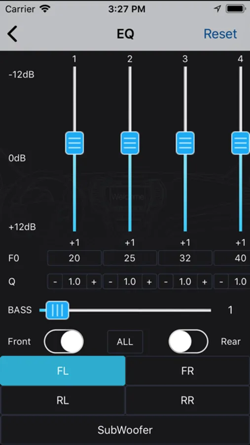 After connecting App to Car Amplifier with Integrated DSP, EQ, BASS, TIME ALIGNMENT, PHASE, MUTE, FILTER , SAVE SOUND SETTING TO PHONE, SAVE SOUND SETTING TO AMPLIFIER, LOAD SOUND SETTING FROM PHONE, RCA OUTPUT etc could be controlled through this App.