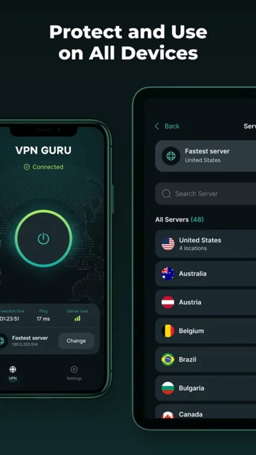 User-Friendly Interface: Guru VPN is designed with simplicity in mind, making it easy to connect with just a single tap.