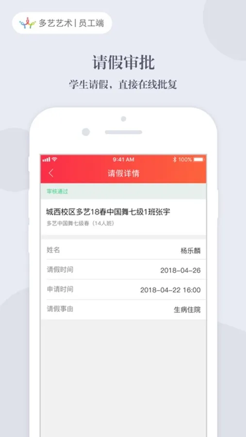 2、 老师可通过app查看学生请假列表,可直接在线上完成请假批复