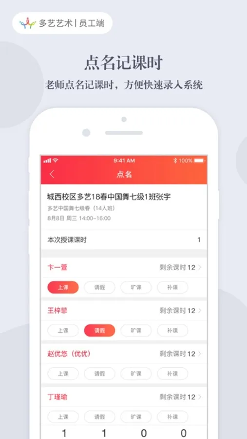 1、 老师可实时通过app查看个人班级、学员、上课记录详情