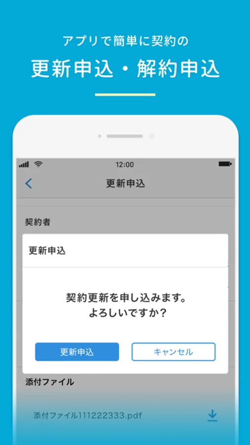 お住まいのお部屋の賃貸借契約の契約更新の意思表示、退去の申込みを行うことができます。