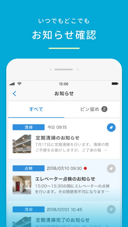 管理会社からのお知らせをプッシュ通知で受け取ることができます。