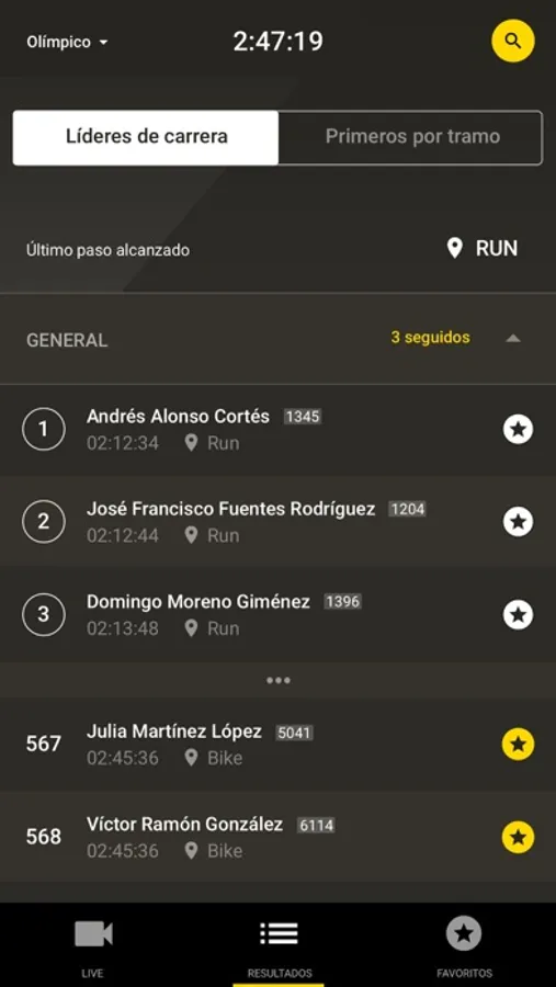 Además, podrás ver de forma rápida cualquier clasificación al instante: por categorías, los primeros corredores por tramo y el último punto alcanzado de los participantes a los que sigas.