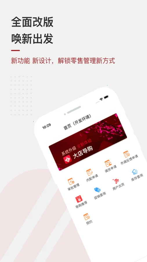 辅助店员完成进销存的系统工具,可操作仓配相关申请及审批,可查询店内商品、促销、订单等信息,并支持商品导购、代下单、出货等功能