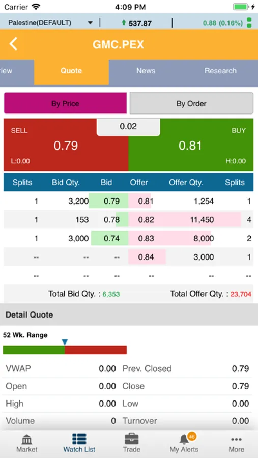 • Detailed quote for symbols, giving you a snapshot of a symbol's performance