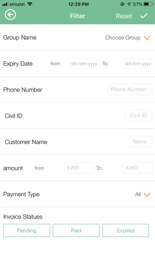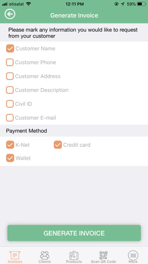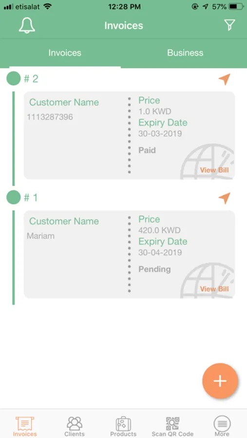 Once an invoice is created you can send them to your clients via SMS or a hyperlink.