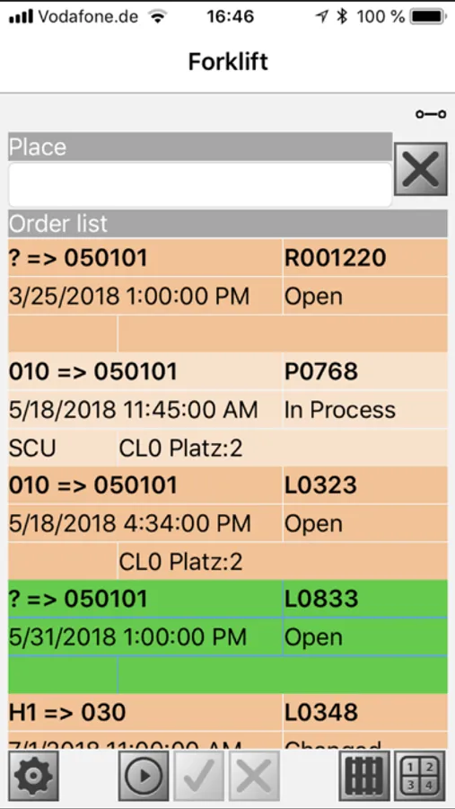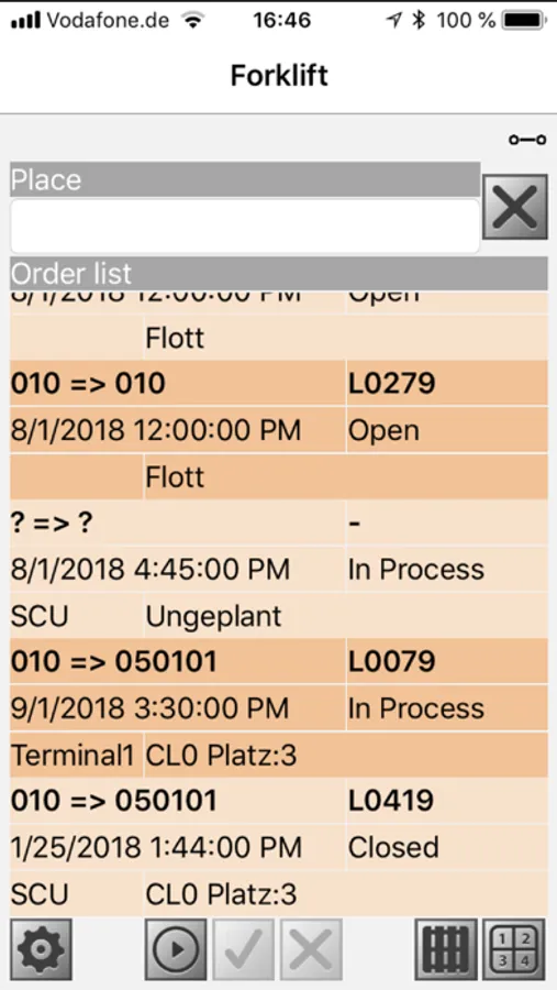 Warehouse management module for the forklift. A communication platform between the forklift driver and the operations employee. The Forklift driver receives internal transportation information of goods. The transportation orders can be released manually through the stock info of the central system and through the forklift driver on the terminal or handheld. Or automatically at the measuring line and the grading line.