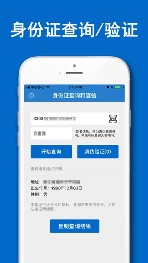 身份证查询:身份证归属地、出生年月、性别、等信息极速查询!