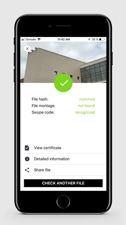 * After the video recording is completed, the unique hash of the file will be saved in the blockchain and you will always be able to confirm that your video content was created no earlier than the moment when the swype code was generated and no later than the moment of loading the unique hash in the blockchain.