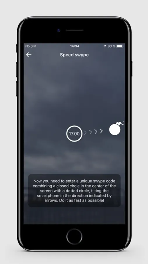 * Enter swype code moving the phone along the arrows to combine the circles.