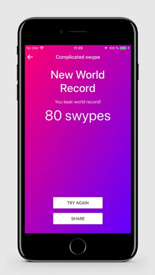 * To activate the SWYPE ID function make a circular movement. The application will automatically generate the unique swype code based on the information from blockchain and display it on the screen.