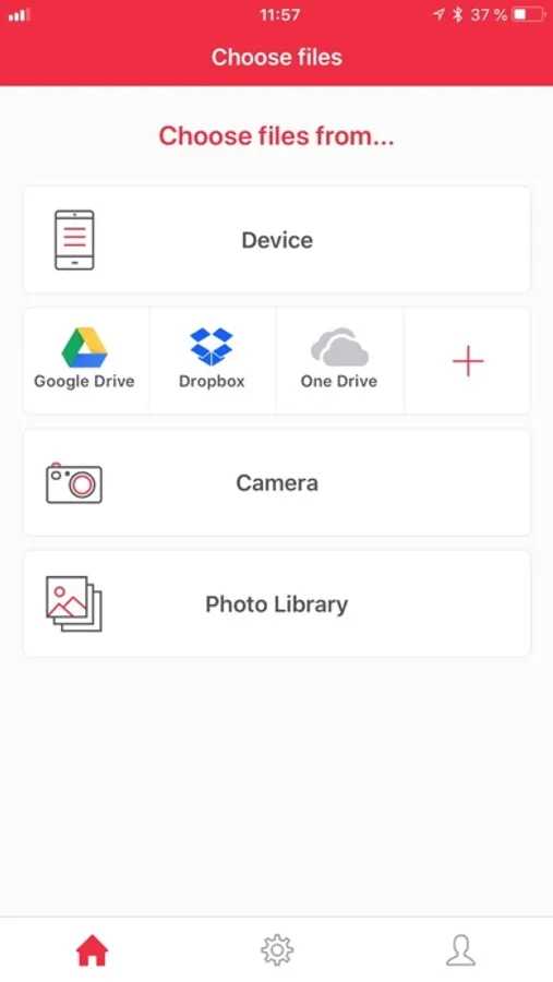 • Upload files from a cloud storage service such as Google Drive, Dropbox, or One Drive.