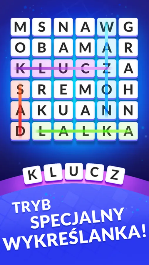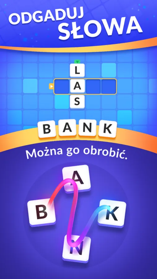 Każde słowo na planszy tworzy krzyż z innym wyrazem - dzięki temu odnajdziesz właściwe słowo spośród liter ułożonych w okrąg literek. Przeciągając pomiędzy literami tworzysz słowa i układasz je na planszy tak aby utworzyły krzyż z już istniejącymi wyrazami w krzyżówce. Krzyżówka będzie kompletna wtedy gdy każde słowo będzie odpowiednie.