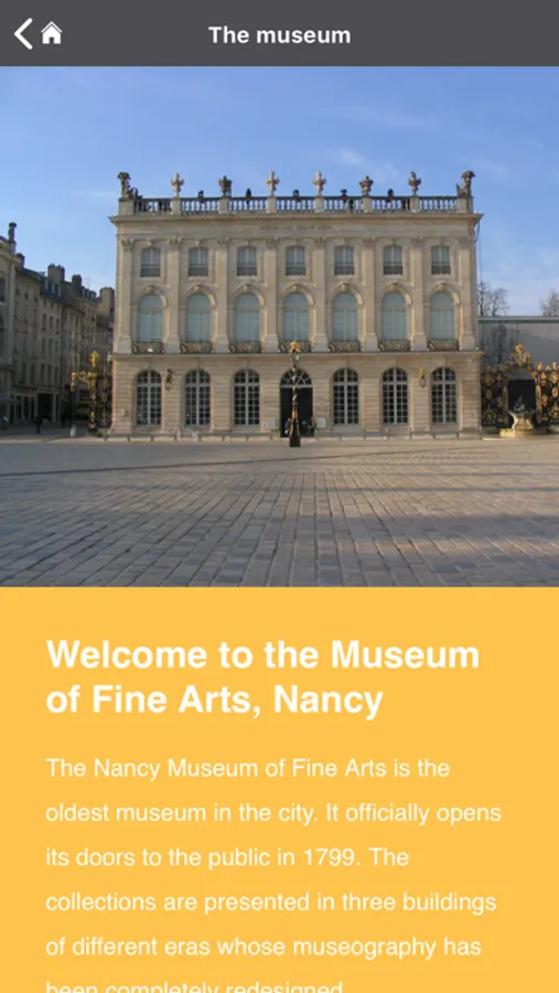 Discover the collections of the Musée des Beaux-Arts, Nancy (France) with this mobile application. Visit the museum through the centuries, its masterpieces, a theme or the look of a writer; follow our agenda, play, explore, test and renew your visit as often as you want! The mobile application of the Museum of Fine Arts Nancy is aimed at all audiences: adults, children and disabled public thanks to its courses LSF and audiodescriptif. Temporary exhibition routes will also be available on this application.