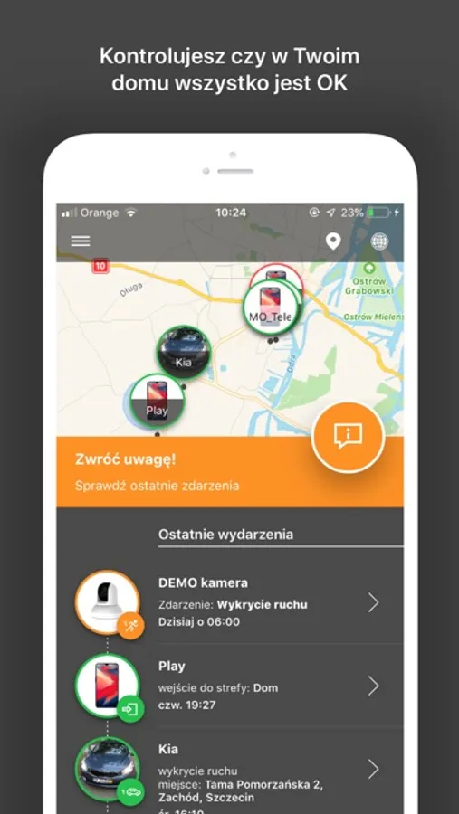 Śledzisz lokalizację dzieci, dziadków czy psa. Otrzymasz alarm, jeśli będzie dziać się coś złego. System kamer i czujników zapewni Ci spokój i poczucie bezpieczeństwa. Lokalizator auta sprawi, że zawsze łatwo znajdziesz auto. Jeśli jeździ nim ktoś inny, dostaniesz powiadomienie o każdym przekroczeniu prędkości.
