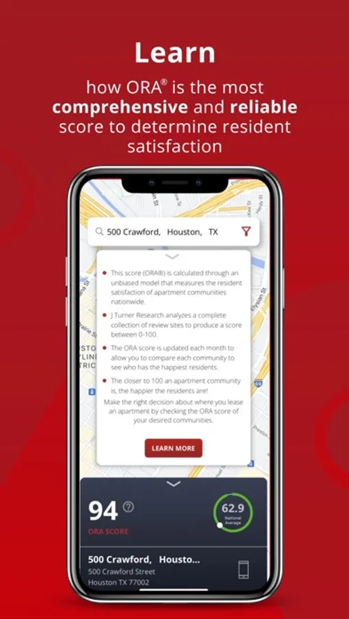 Looking for top-rated apartments that prioritize resident satisfaction? Introducing ORA, the only independent app that ranks apartments solely on online resident satisfaction, providing you with a reliable assessment of the community before selecting your next apartment community. With ORA, you can now find apartments that prioritize resident satisfaction.