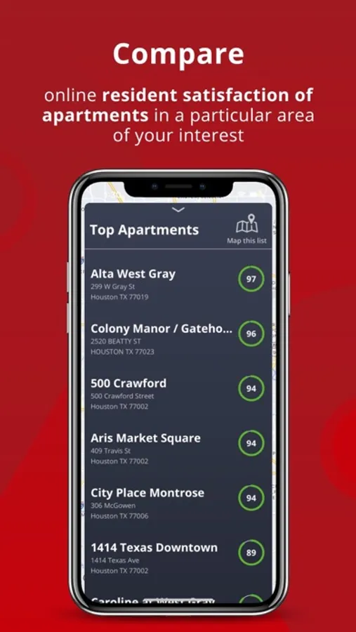 • Find top-rated apartments: Discover apartments with great reviews and high resident satisfaction.