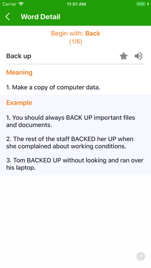 We have included more 300 phrasal verbs. You can read and learn them in two ways: